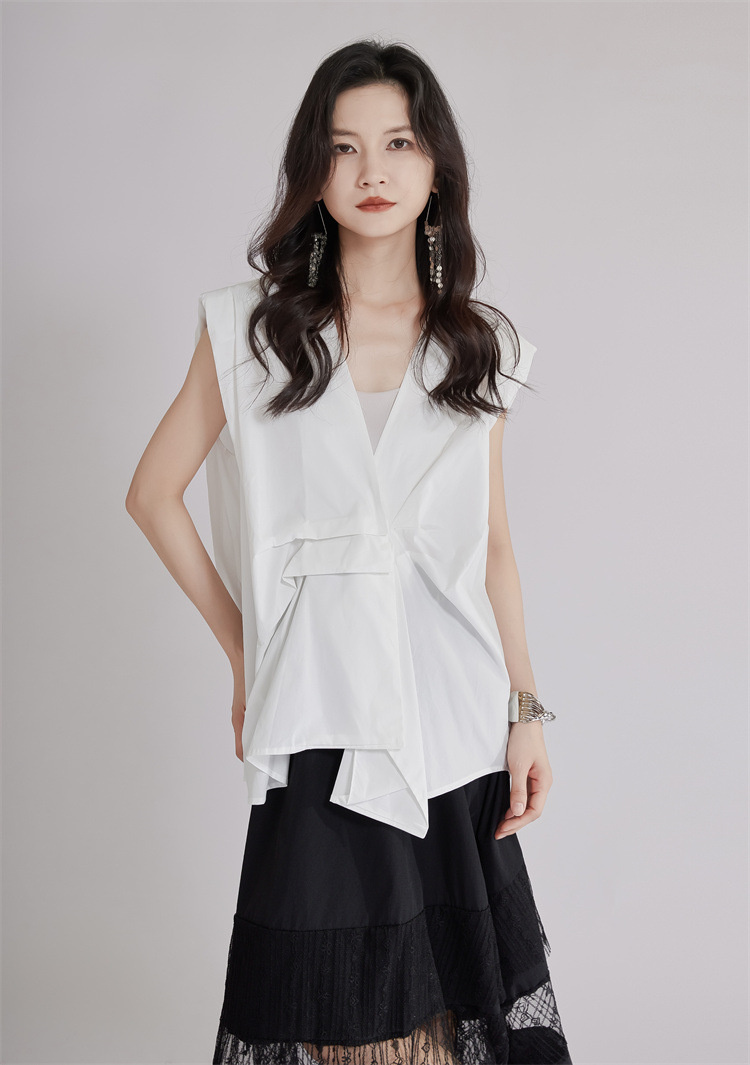 | 韓国大人気 デザイン 2025夏 新作 ノースリーブVネック ロングブラウス ストール加工 ゆったり | |||