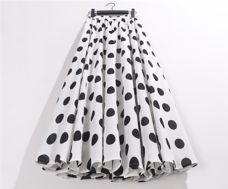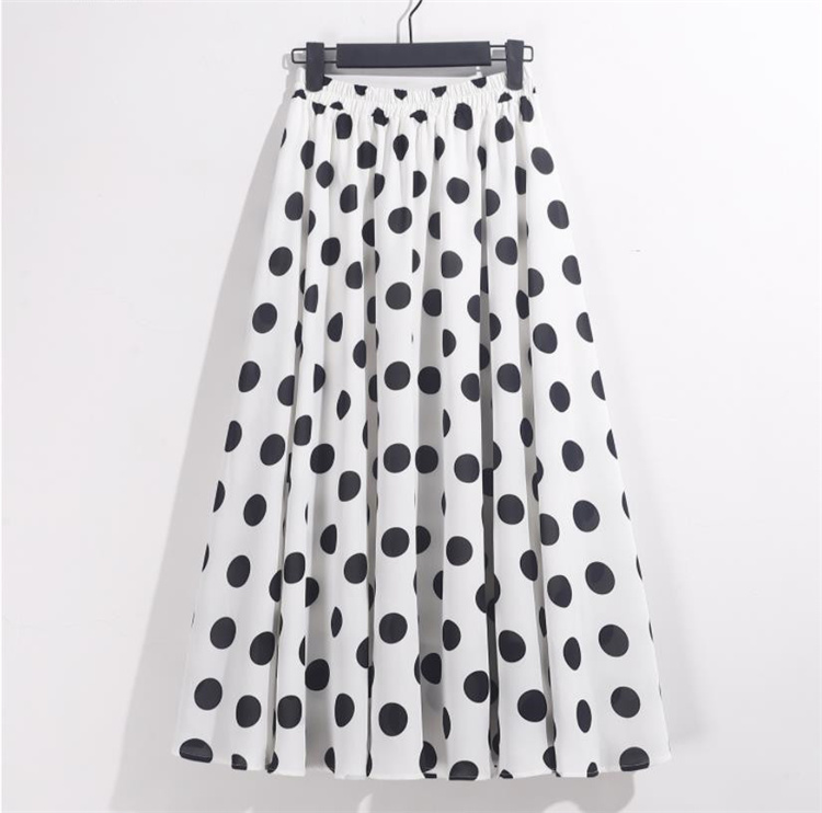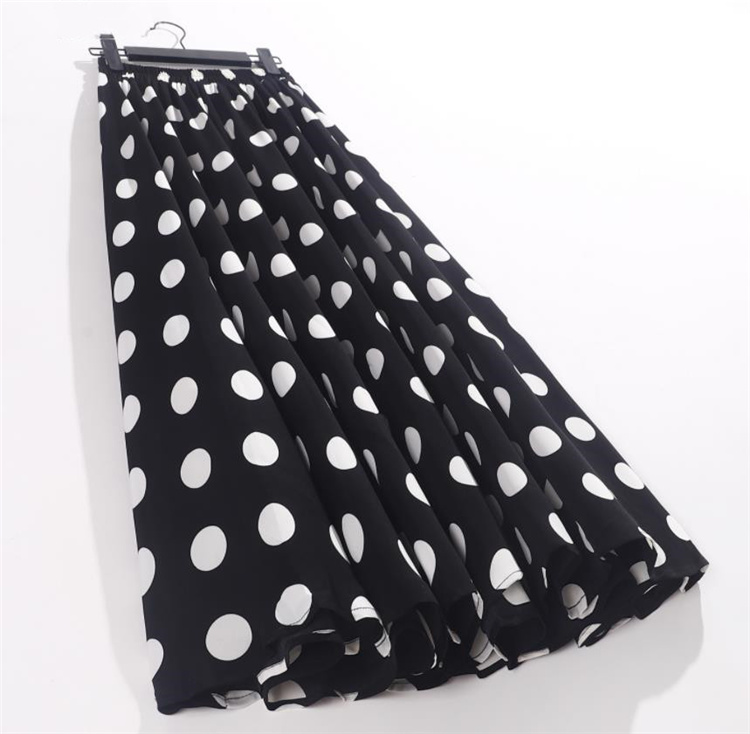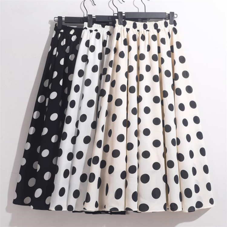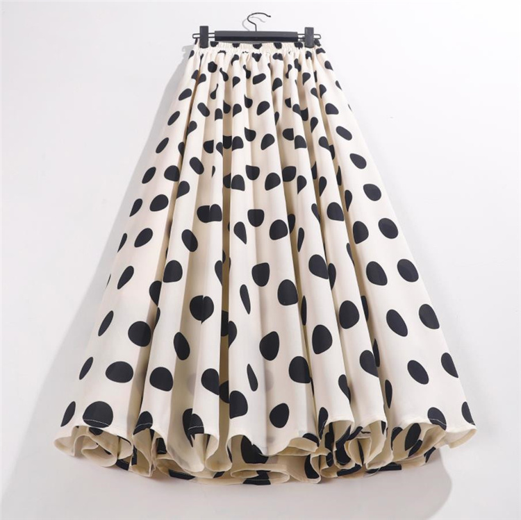 INSスタイル sweet系 シフォン プリント ビッグポルカドット スカート A字型 大きい裾 ハイウエス |