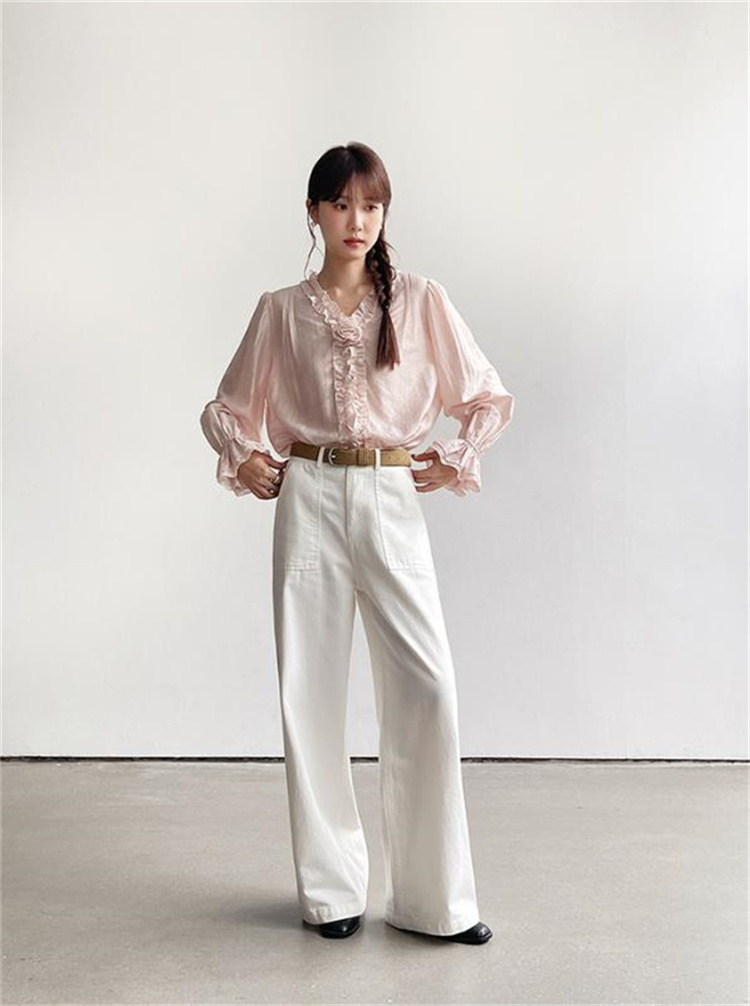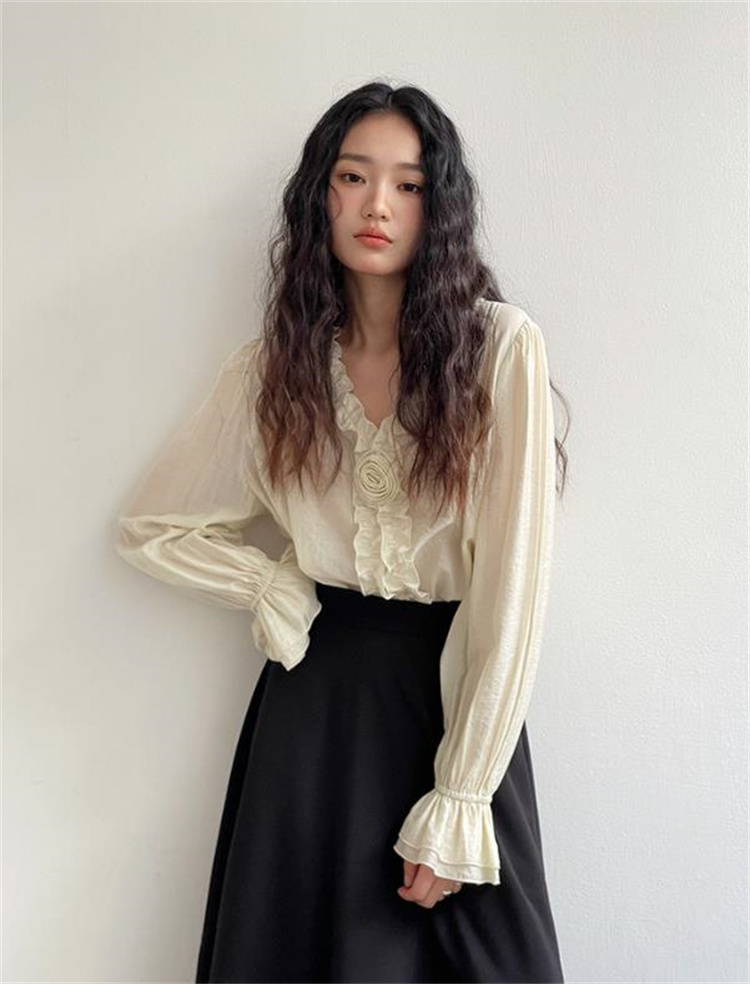 | ファッション祭り特価中 レディース キュート風 長袖ブラウス 春トップス フリル刺繍デザイン | |||